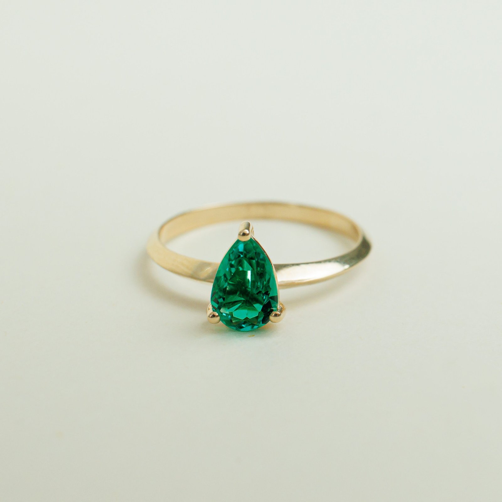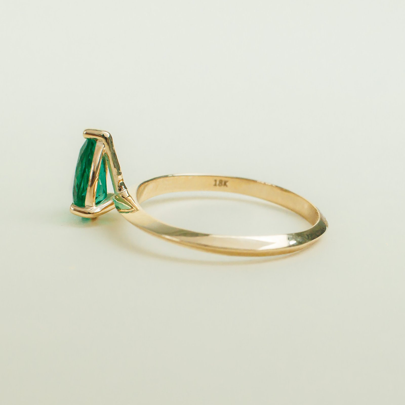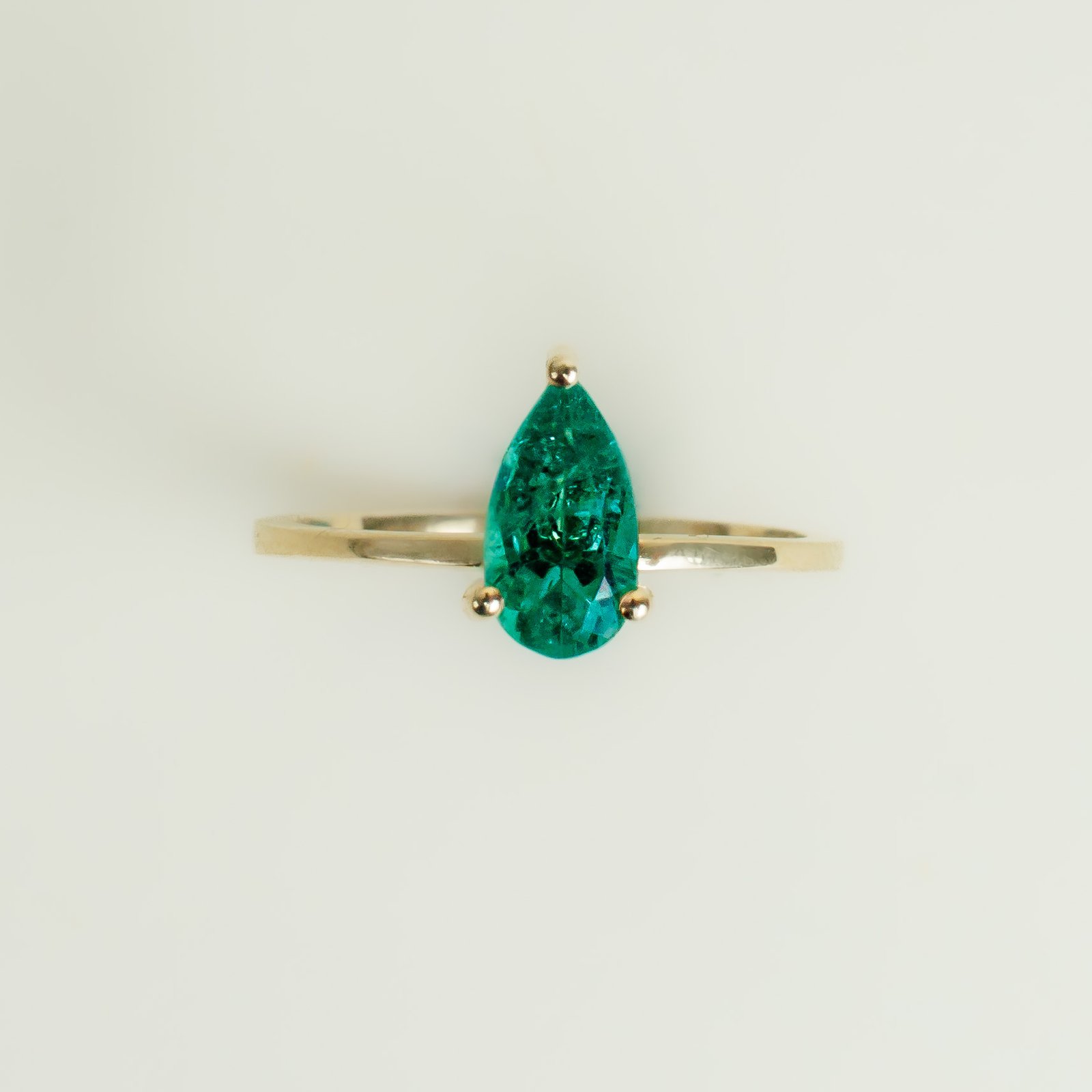 Anillo en Oro Amarillo de 18k con Esmeralda Natural Colombiana Talla Gota